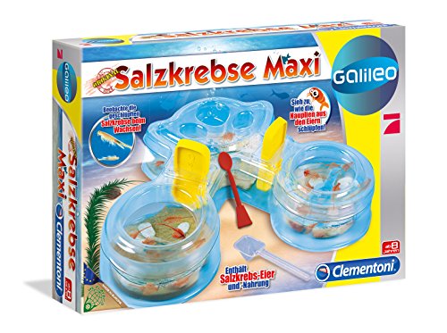Clementoni GmbH Galileo-Salzkrebse Maxi Ein großes Experimentierset mit allem Nötigen, um Salzkrebse zu züchten, zu beobachten und besser kennenzulernen. Ab 8 Jahren. Achtung! Nicht für Kinder unter 3 Jahren geeignet, da Kleinteile verschluckt werden können. Erstickungsgefahr! Warnung! Lesen Sie vor der Verwendung bitte die Bedienungsanleitung für dieses Experiment.Züchte Salzkrebse